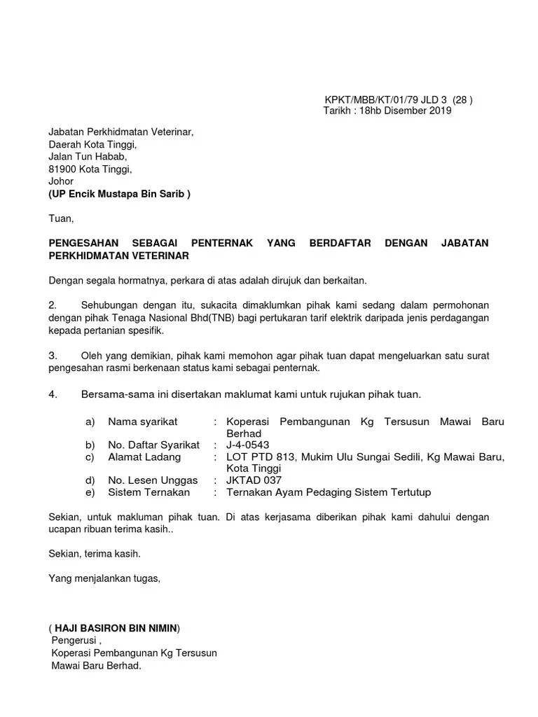 Jika tiada tindakan pendaftaran dilakukan selepas 30 hari dari tarikh surat kelulusan nama syarikat dikeluarkan maka nama yang diluluskan itu akan terbatal . Untuk makluman, surat rasmi merupakan satu karangan yang ditulis mengikut format bagi pengakuan dan tandatangan pengirim : Tuan, memohon penukaran nama pemegang akaun merujuk kepada perkara di atas, saya ingin memohon penukaran nama. Contoh surat rasmi pemberitahuan pertukaran nama syarikat yang, contoh surat rasmi pemberitahuan pertukaran nama syarikat makanan, . Contoh surat rasmi pemberitahuan pertukaran nama syarikat . Surat rasmi pemberitahuan pertukaran nama syarikat story moryeyla. Surat rasmi pemberitahuan pertukaran nama syarikat yang, surat.